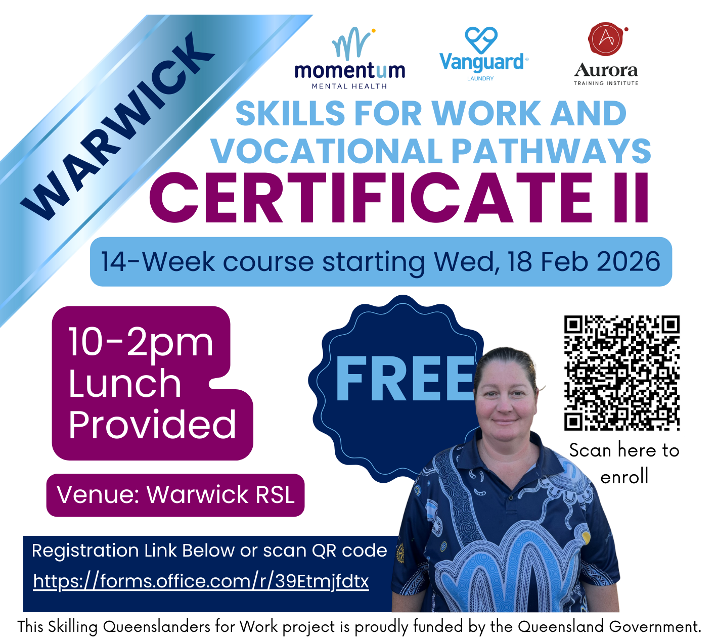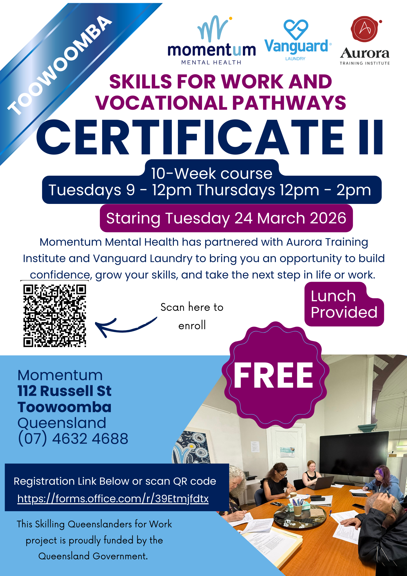 Momentum is thrilled to announce that we have received funding from the Queensland Government through the Skilling Queenslanders for Work initiative to deliver a free Certificate II in Skills for Work and Vocational Pathways.