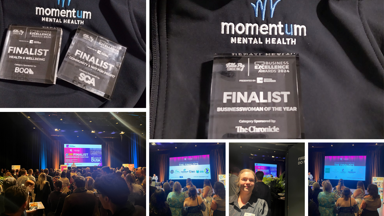 Momentum Mental Health is proud to have been recognised for our impact and dedication to community wellbeing through several prestigious awards. In 2024, we were honoured to receive the Toowoomba Chamber of Commerce Business Excellence Award for Excellence in Health and Wellbeing, and named a finalist in the Queensland Community Impact Awards in the Prevention Excellence category.