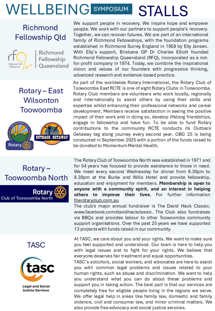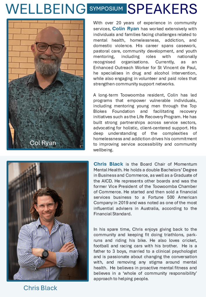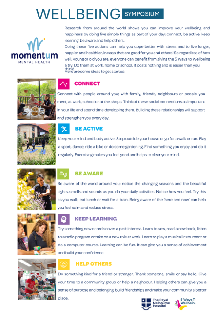 The symposium offered a diverse program, covering topics such as the importance of wellbeing for children, families, and vulnerable people, as well as sessions on financial stress management, resilience through meditation, and the impact of our built and natural environments on mental health.