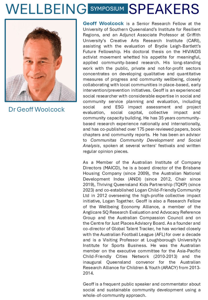 Speaker Dr Geoff Woolcock, UniSQ