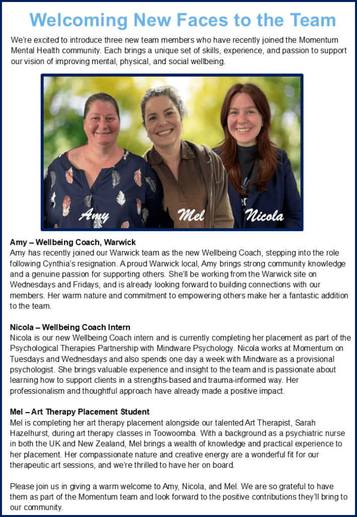 Each month we release the Momentum client newsletter. If you’d like to read the latest issue, click below and click the arrows on the left and right to scroll view online or download and print.