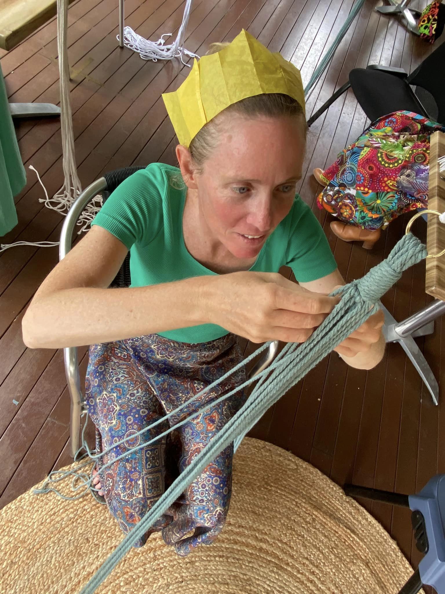 Macramé is a form of textile produced using knotting (rather than weaving or knitting) techniques.