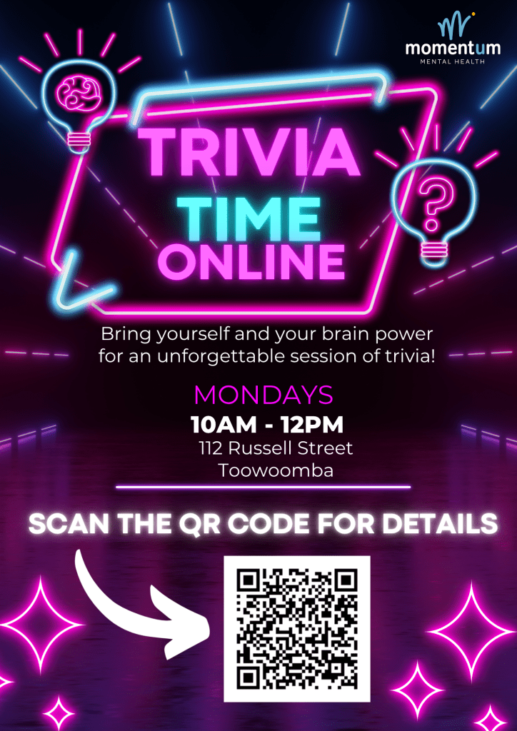 Looking for a fun way to start your week, meet new people, and keep your mind active? Join us for our weekly Trivia Sessions every Monday from 10:00am to 12:00pm at 112 Russell Street, Toowoomba.