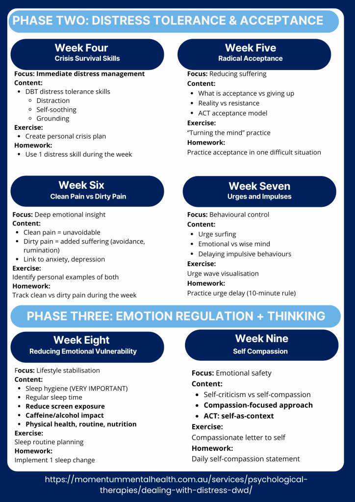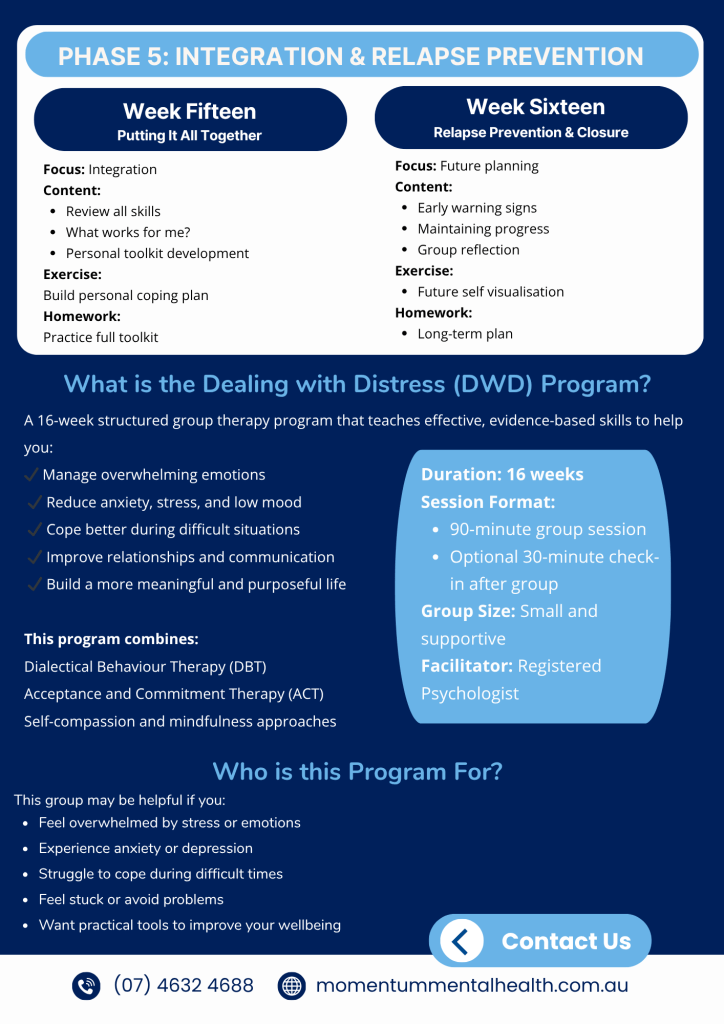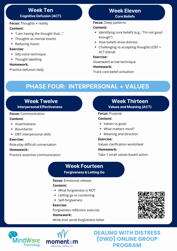 A 16-week structured group therapy program that teaches effective, evidence-based skills to help you: