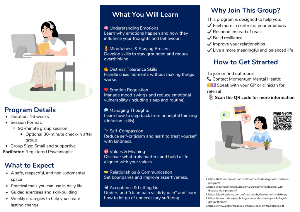 👩⚕️ Speak with your GP or clinician for referral (GP Mental Health Care Plan needed).