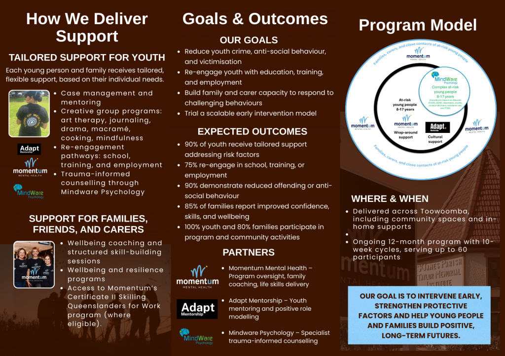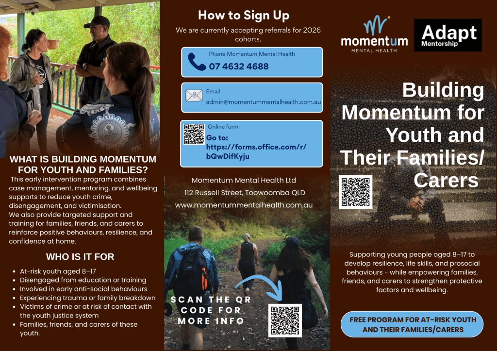This program is proudly delivered by Momentum Mental Health in partnership with Adapt Mentorship and Mindware Psychology.