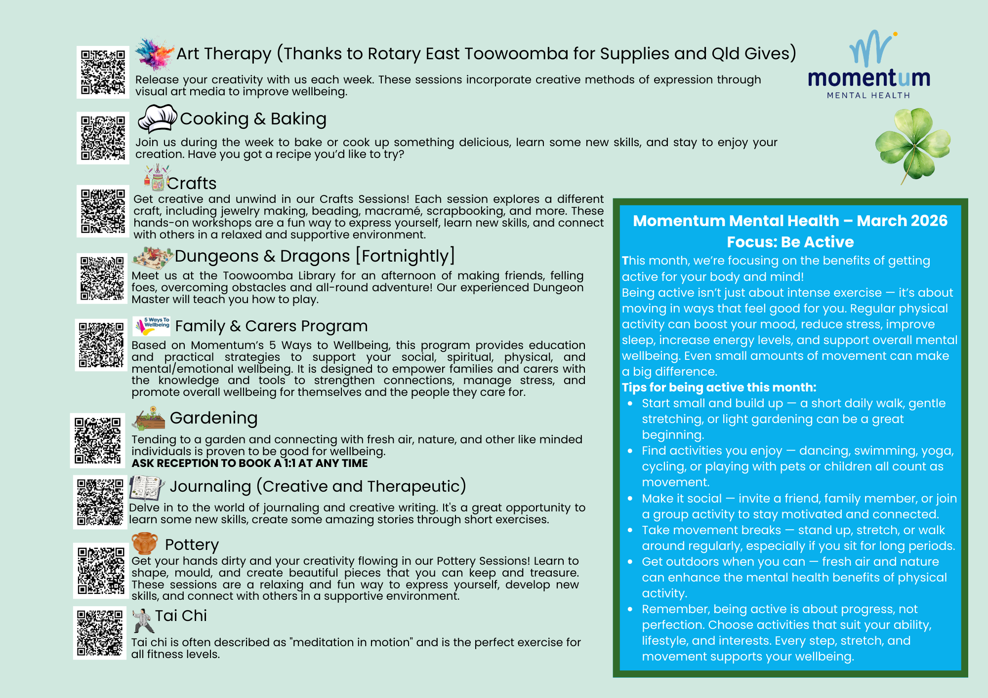 Click here to get more information about the different programs available each month at Momentum.