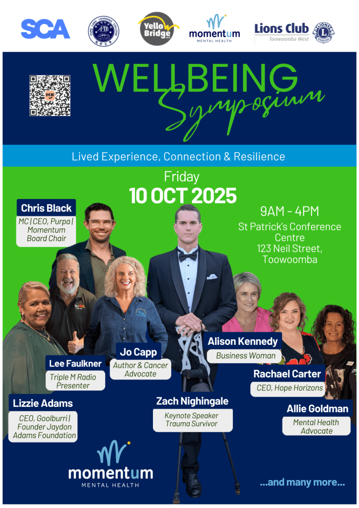 Momentum is excited to be hosting our Wellbeing Symposium on 10 October 2025 – a day dedicated to lived experience, connection, and resilience. This inspiring event will showcase stories, insights, and practical advice from well-known local voices including Zac Nightingale, Jo Capp, Alison Kennedy, Lee Faulkner, Lizzie Adams and many more.